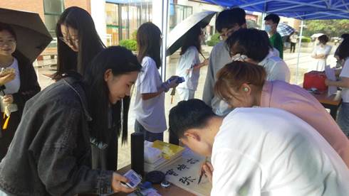 活动现场,文学院学生会开展了端午知识答题活动,题目内容包括“端午节”来历、传统风俗、历史故事等,现场氛围十分活跃,同学们踊跃参加,在轻松愉悦的氛围中主动了解端午习俗,学习中华传统文化。行星诗会的同学们通过分享、朗诵端午节诗词佳句等形式,与同学们现场互动,同学们在参与中感受到了中华古典诗词的魅力,自觉接受中华传统文化熏陶,从而进一步坚定了文化自信。国学会的同学们开展了书画作品展和汉服展活动,用书法作品、汉服展示致敬传统文化,活动现场热闹非凡,同学们在参与中感受书法之美,汉服之美。