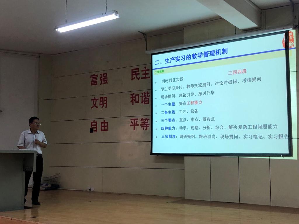 动员会上,任院长首先对于本次生产实习的总体工作安排进行了说明,并对生产实习的目的意义,教学管理机制及重点环节流程、质量监控机制等方面进行了详细讲述,希望同学们珍惜好利用好这次生产实习机会,将所学理论知识和生产时间紧密结合,勤思考,勤动手、勤学习、勤请教,在生产实践中检验所学理论知识,充实完善知识体系,牢固树立安全意识、纪律意识、机遇意识、吃苦耐劳意识、合作意识。来自三个专业的刘璐璐、张彦龙和吕保清同学依次进行了表态发言,承诺要严格遵守企业相关规定和学校学院实习相关规范,听从指导教师安排,努力圆满完成实习计划。