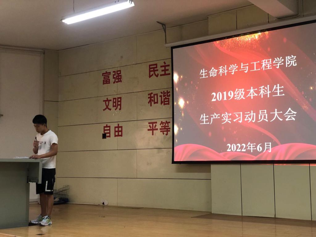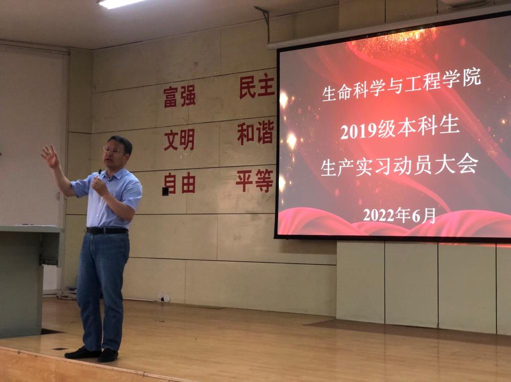 为确保2019级食品科学与工程、生物工程、制药工程3个专业学生的生产实习实践教学环节能够安全有序高质量进行,生命科学与工程学院于6月24日下午16:30在集贤楼108教室召开生产实习动员大会。生命科学与工程学院院长伍国强教授、党委穆龙书记和武军莉副书记,教学基层组织负责人王雅、李善家和赵小亮,以及课程负责人张百刚、冷非凡、范文广等教师,以及2019级全体学生参加了此次动员会,本次动员会由学院副院长任海伟教授主持。