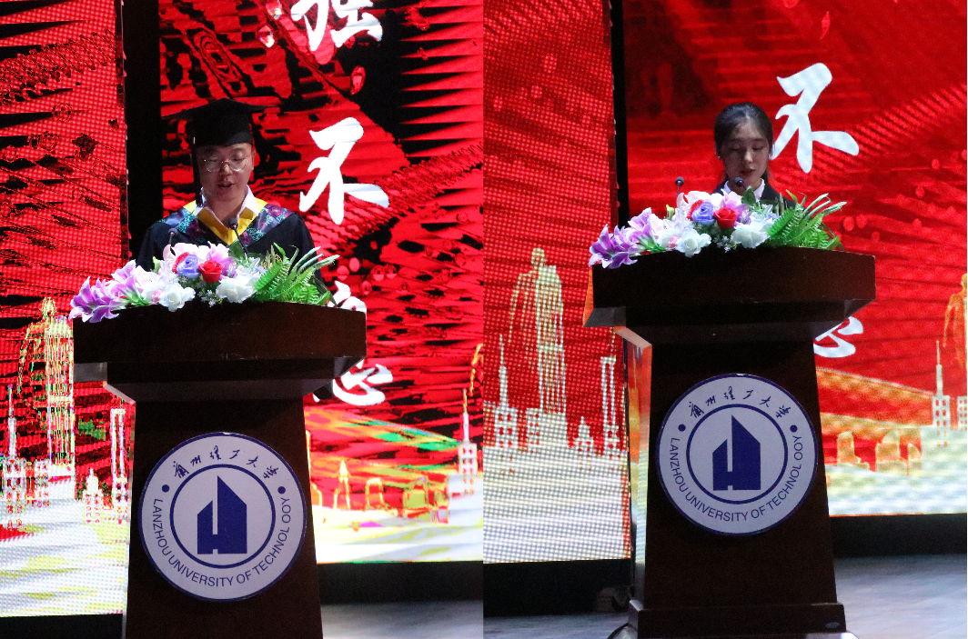 毕业生代表杨文涛同学和在校生代表冯丹丹同学分别发言。学院党委书记曹立宏代表学校、学院接受了毕业生赠送的纪念品。李琪飞副院长向毕业生致辞,他希望同学们以强大的实力、努力与坚持,用价值点亮未来,不断去学习、努力去改变、持续去进化,积极适应快速变化的时代环境,行稳致远,有所作为。