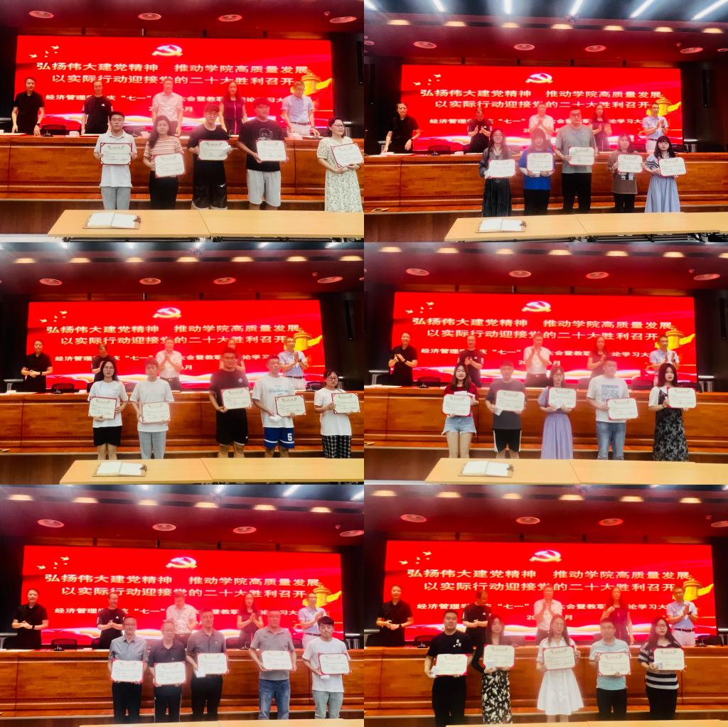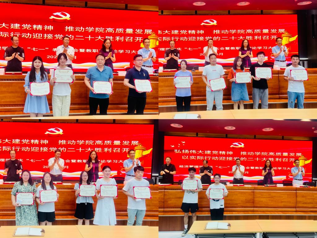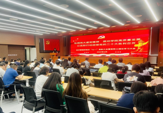 为庆祝中国共产党成立101周年,激励广大基层党组织和党员同志立足岗位、争先创优,以优异成绩迎接党的二十大胜利召开,6月30日,经济管理学院召开庆“七一”表彰大会暨教职工理论学习大会。大会表彰了在2022年涌现出的抗疫优秀共产党员、抗疫先进个人和先进集体。学院全体教职工参加了大会,学院党委副书记王翀主持了会议。