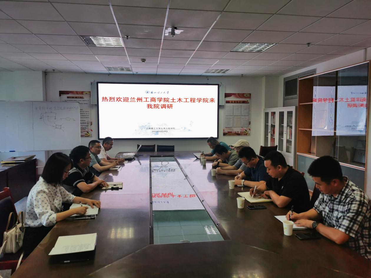 2022年6月29日早上,兰州工商学院土木工程学院院长陈继强、教学总监栗宜民、党总支书记陈志昊、院长助理刘长东、土木工程教研室主任马龙、工程管理教研室主任易建强一行6人来我校土木工程学院调研专业建设、人才培养、课程建设、实践教学、学生党建及学科竞赛等方面工作。土木工程学院副院长李万润、建工系吴长主任、王永胜副主任、工程管理系刘平主任及李辉山老师参加了会议。会议由李万润主持。