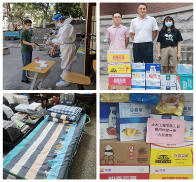 “疫情就是命令,防控就是责任”。为落实学校的疫情防控要求,维护校园安全和保障师生健康,自学校实行封闭管理以来,土木工程学院党委有序组织,院领导及辅导员以校为家,分别入住彭家坪和兰工坪两校区,深入学生一线,全天候在校坚守,全方位履职尽责,全身心投入疫情防控工作,做到管控不封温暖,隔离不隔爱心。教师党员积极主动报名承担学校的志愿者任务,多人次坚守一线承担核酸检测扫码工作,为学校开展大规模的核酸检测提供了保障。在值守过程中,各位值守老师认真落实学校防疫工作任务,按时配送一日三餐、帮助同学解决生活困难,为每位学生带去学校的温暖和关怀。