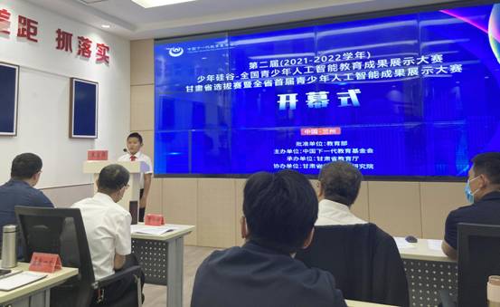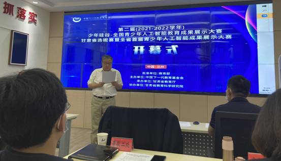 8月29日上午9时,第二届(2021-2022学年)少年硅谷——全国青少年人工智能教育成果展示大赛甘肃省选拔赛暨全省首届青少年人工智能成果展示大赛在甘肃省教育厅二楼电教中心数据展示厅启动。大赛组委会主任、中国下一代教育基金会理事长王卫国,甘肃省教育厅党组成员、副厅长曾华辉出席了开幕式并致辞,甘肃省教育厅相关部门负责人、甘肃省教科院负责人和各市(州)相关部门负责人、裁判及选手代表分别通过“线下+线上”的形式出席了开幕式。开幕式由甘肃省教育厅关工委常务副主任丁光明主持。