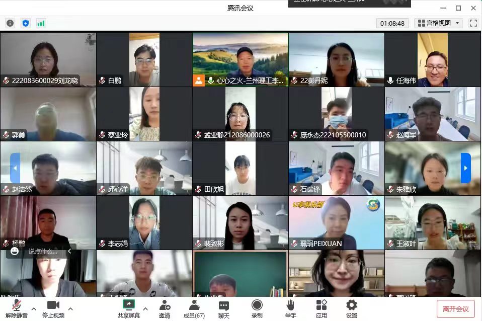 金秋九月,丹桂飘香。在这个收获的时节,生命科学与工程学院迎来了2022级硕士研究生。为了让“LUT生物资源开发与环境健康研究团队”的新生对研究生生活有一个清晰的规划和认知,9月22日晚,在兰外联培的2020级硕士研究生蔡亚玲和赵浩然两位同学在云端分享了一年多来的读书和实践感悟,为2022级新生的学习与科研指点迷津。院长伍国强教授、副院长任海伟教授和70余名研究生参会。甘肃省特色生物资源产业化校企联合创新中心主任、生命科学与工程学院李志忠教授主持交流会。