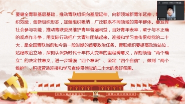 通过此次“每月一学”活动的持续开展,学生会、研究生会工作人员对青联是党缔造和领导的青年组织的属性认知更加清晰,对团结带领各族各界青年坚定跟党走理想信念的重要使命更加明确,对圆满完成迎接党的二十大的政治任务更有信心。