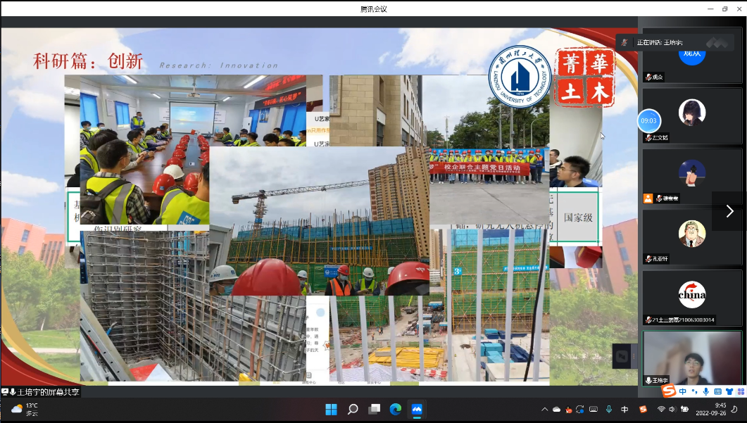 为激励大学生努力学习,争当学习标兵,表彰优秀大学生,兰州理工大学土木工程学院于9月26日早上9:00通过腾讯会议举行了2021-2022年度本科生国家奖学金答辩会。参加本次会议的有学院党委王仪杰副书记、李万润副院长、辅导员、教师代表和学生代表,会议由王仪杰副书记主持,土木学院部分学生也参加会议进行了观摩学习。