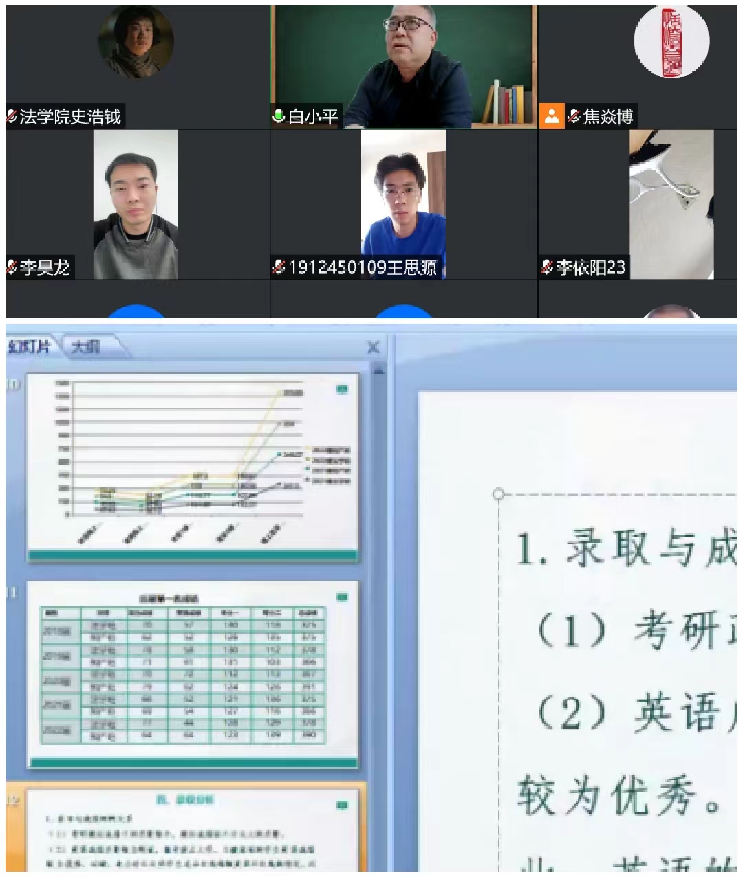 为调动法学院2023届本科生就业升学积极性,帮助毕业年级学生了解学院历届学生的考研情况,准确把握研究生考试的报名工作和考试规则,9月27日下午3:00,由学院副院长白小平主讲的《2023届本科生考研动员与指导专题宣讲》以线上会议的形式顺利开展。辅导员焦焱博,2019级67位同学参加。
