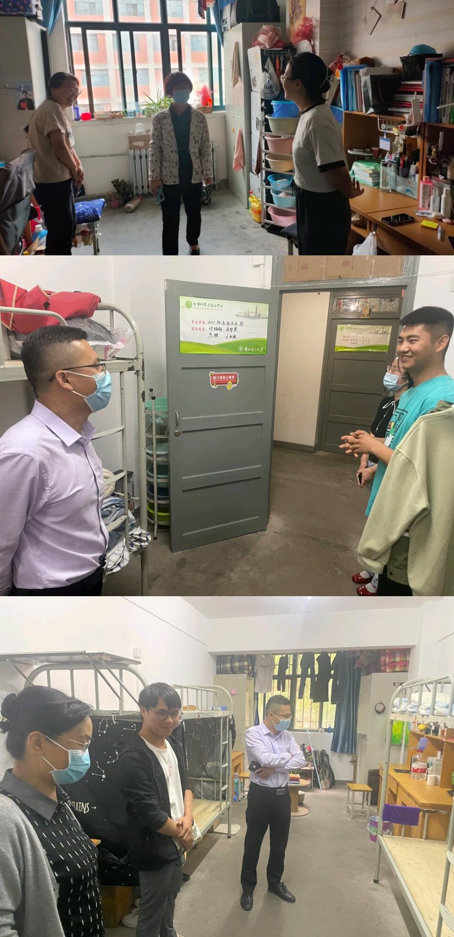 为近距离了解2022级新生来校后生活适应情况,了解返校学生心理状况动态,关心关爱学生日常生活。9月30日下午生命学院全体党委委员分成三组,与辅导员、班主任深入本科生和研究生宿舍分头进行走访,了解疫情期间学生宿舍疫情防控、宿舍卫生和在校学习生活等情况。