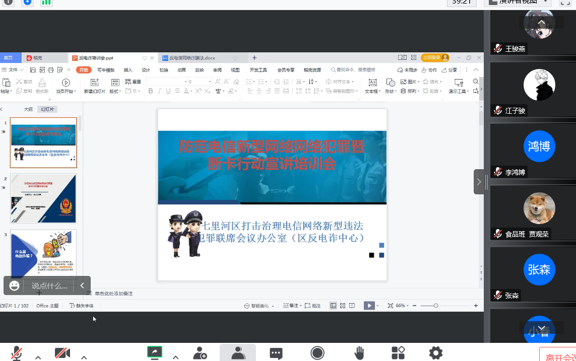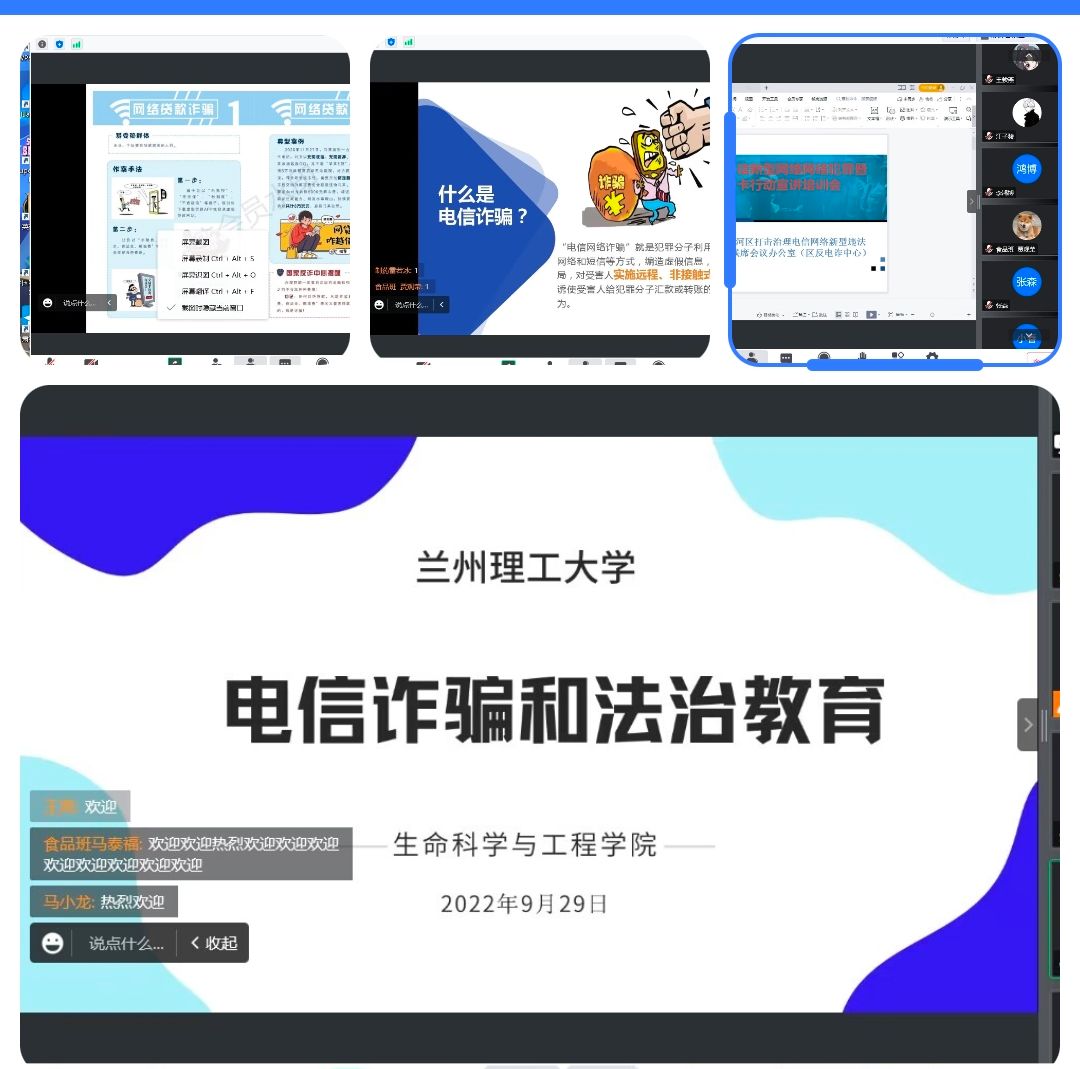 为增强学生法治意识,提高学生防电信诈骗能力,生命学院于9月29日19:30组织开展了防范电信诈骗网络安全教育活动,本次活动邀请七里河治理电诈联系会议办公室朱毅斌警官以线上讲座的形式开展,2022级全体新生参加了本次活动。