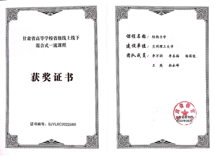 《结构力学》作为土木工程专业的一门专业核心基础课,在土木工程专业课程体系中起到承上启下的作用。近年来,《结构力学》课程教学团队坚持“以学生为中心”的教学理念,积极探索一流课程建设模式,形成了“思政教育-专业教育-创新教育”三创融合的课程教学模式,发起的“小灶课堂”“空中自习室”打破了教学的时空限制,形成点滴激励机制,不断激发学生学习兴趣,并探索形成了教师A-B角协同互动式教学模式,对提升结构力学教学质量起到了积极的推动作用。通过多年的建设,《结构力学》课程入选甘肃省一流课程、校级一流课程、校级示范性混合式教学课程,课程教师团队成员也获得省级创新创业教学名师、省级课程思政教学名师等荣誉称号。(撰稿:李喜梅;审核:陈永泰)