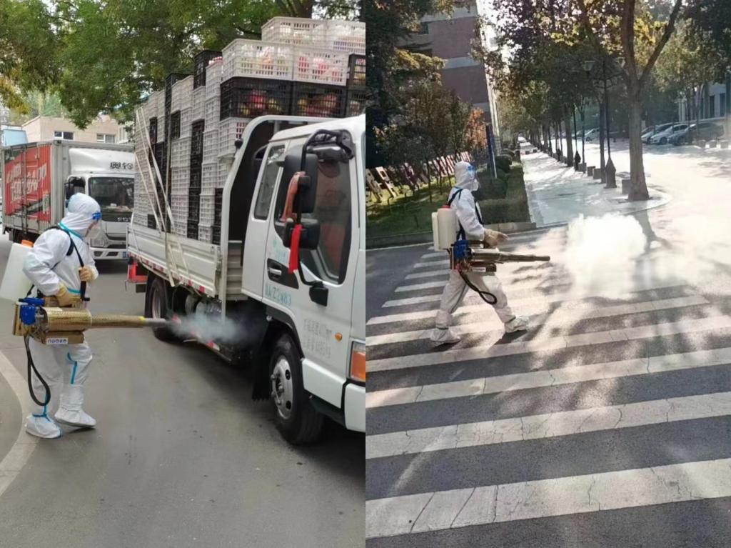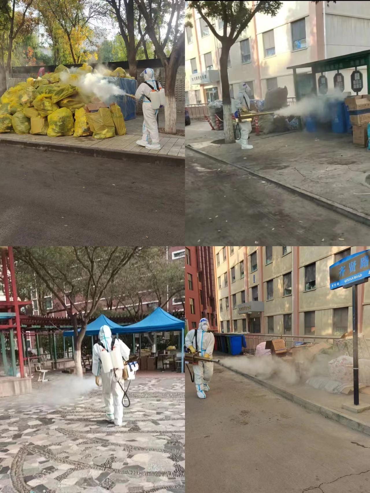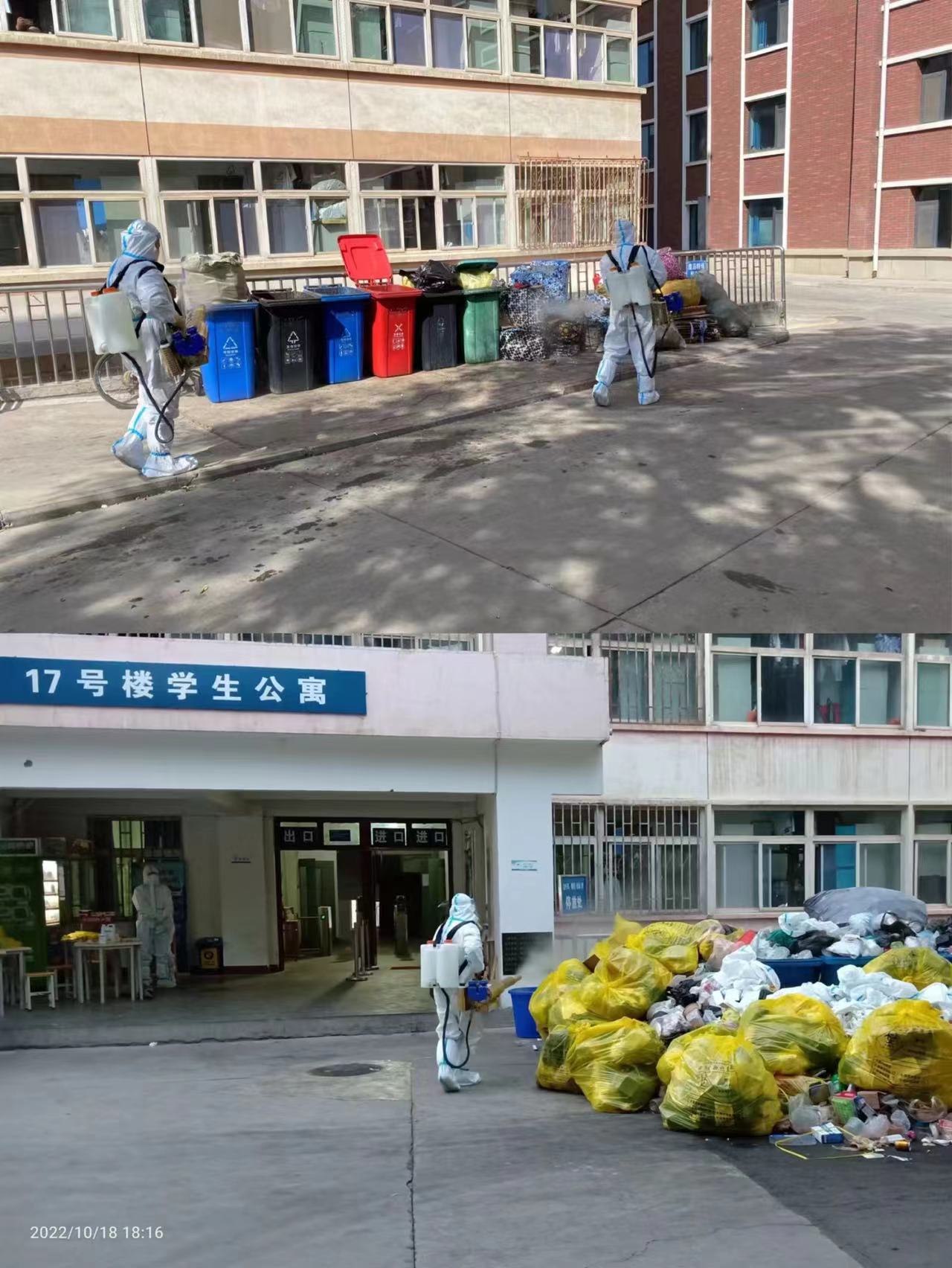 校园每天消杀4次:垃圾点位、公共外围、重点区域,垃圾清运,为学生配送一日三餐;家属区门口值班值守、一扫四查,家属楼内单元口、电梯一天3次消杀、封闭管理区域按规定增加消杀频率、主干道清扫、核酸检测点消杀、为业主配送物资;隔离宿舍不隔离爱,严把公寓的秩序和卫生,做好学生的生活保障……每天的环境保洁、消毒消杀、组织协调已经成为了物业人的例行日程。