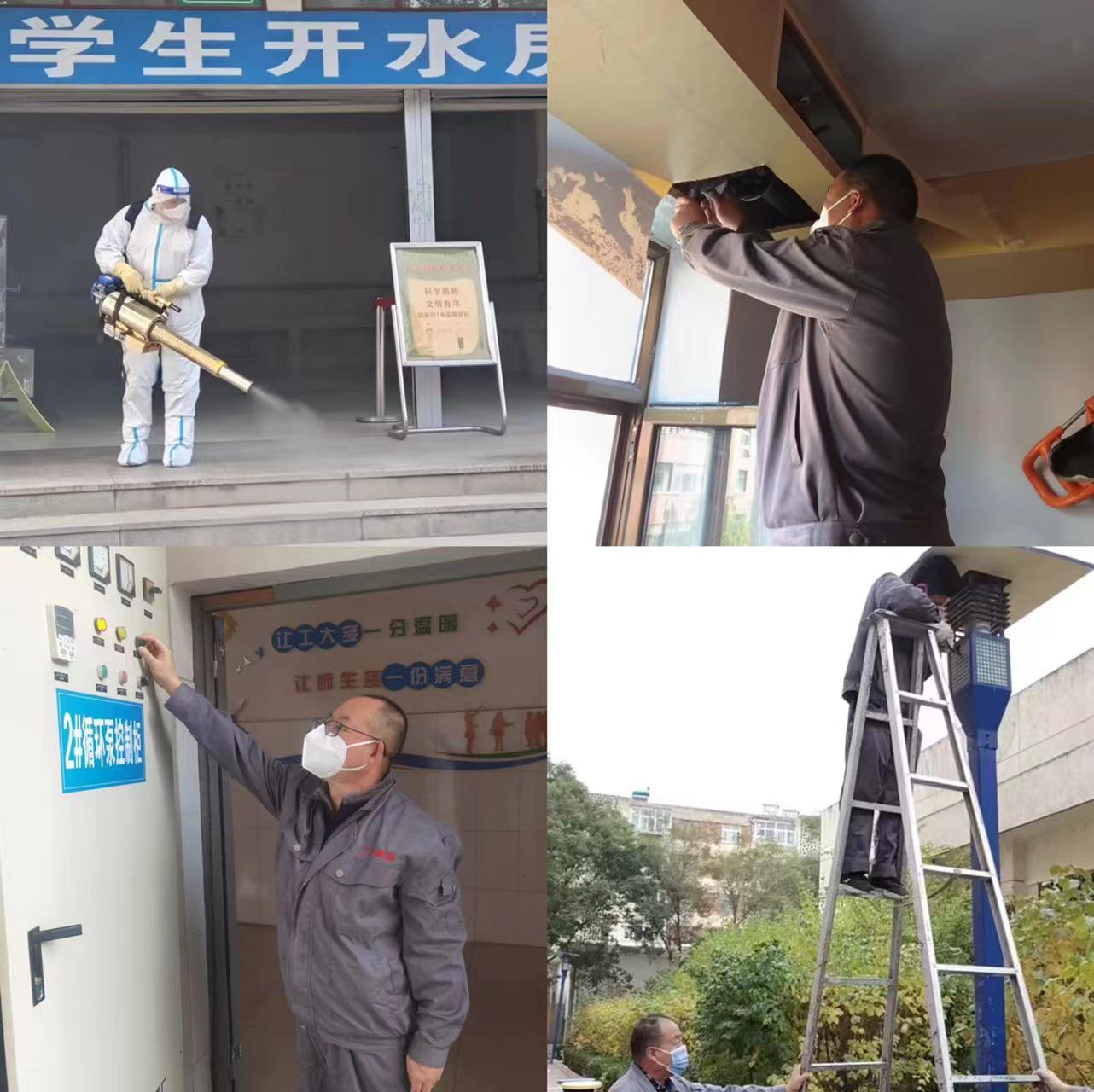 疫情期间两校区的水、电、暖供应更是不容马虎。在做好校园日常维修的同时,供暖来临之际,能源服务中心的保供人员加强对重点供能部位的巡查,确保能源服务安全稳定运行。
