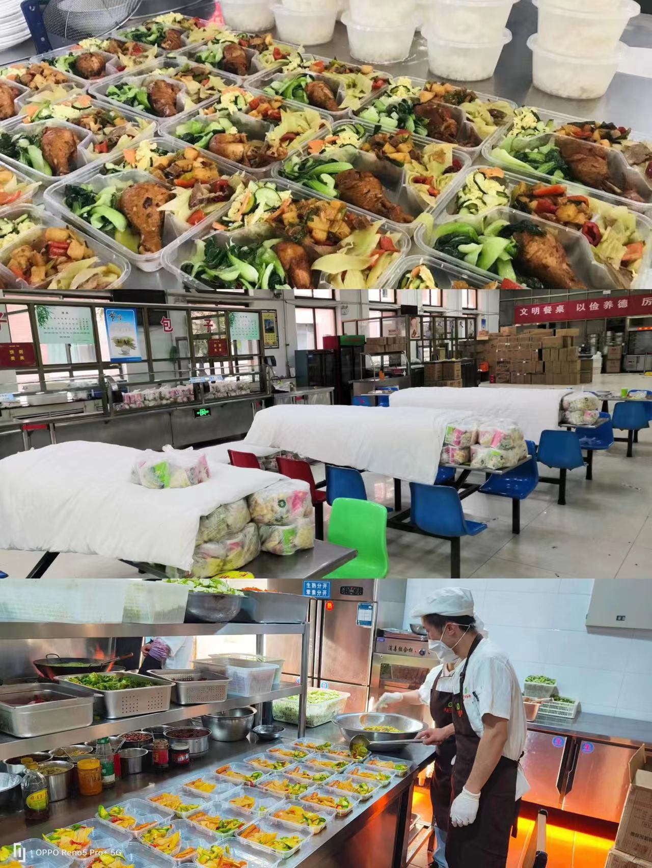 从原材料无接触转运到专人消杀,从食堂人员管控到后厨餐具消毒,从安排餐饮品种到三餐的分装,他们如陀螺一般连轴转。“中午的配送一般从11点开始,下午1点结束,兰工坪校区有11个楼要配送,一天共20000人次左右吧”,当问及具体工作时,餐饮部刘玺元如是说,行色匆匆间又去配送来自彭家坪校区饮食中心驰援的新一车餐食。