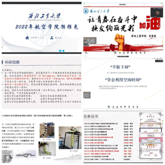 学院学生会主席团成员张爱陆和校学生会主席团成员何晨煜同学分享了他们大学三年以来的科创经历和学生工作经验,希望学弟学妹们在学有余力的情况下积极参与社会实践、志愿服务等活动,不断提高综合能力;甘肃省“三好学生”获得者孙梦娇分享了他的学习经验和参与互联网+大赛、数学建模等科创竞赛的经验,希望学弟学妹们认真学好专业课,积极参与各类专业竞赛和科创活动,不断提升专业素养;已经保研的学生邓森林、张天阳、张书童分享了三年来他们的学习经验和保研相关准备工作,希望同学们从大一开始就要勤学多问,养成良好的学习习惯,认真学好每一门课程,为将来保研和高质量就业打好基础。