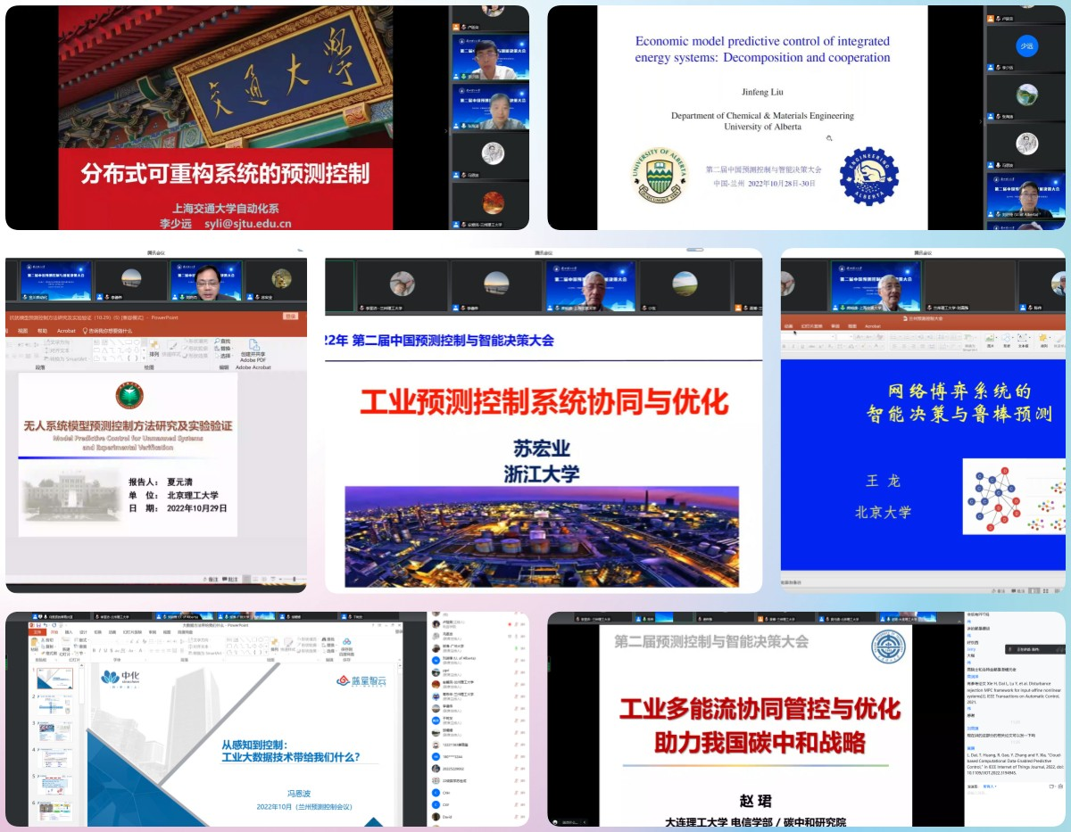 北京大学王龙教授、浙江大学苏宏业教授、北京理工大学夏元清教授、大连理工大学赵珺教授、上海交通大学李少远教授、加拿大阿尔伯塔大学Jinfeng Liu教授、中国化工集团冯恩波高级工程师7位知名专家受邀作大会报告。报告内容既有预测控制基础理论的新近研究成果,也有智能决策和协同优化的应用研究,既有从感知到控制的工业大数据应用方案,也有对碳中和战略的助力方案,更有基于青年论坛的精彩交流与互动。我校电信学院青年教师卢延荣作为青年专家受邀向大会作了题为“离散时间异构线性多智能体系统的编队预见跟踪控制:一种动态前馈输出调节方法”的青年专家专题报告。