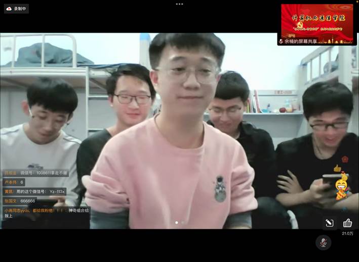 整个活动获点赞数45.2万,互动留言1.166万条,累计在线1000余人,包括其它学院、红柳艺术团等多名同学观看了活动。活动取得了圆满成功,收到了师生的广泛好评。