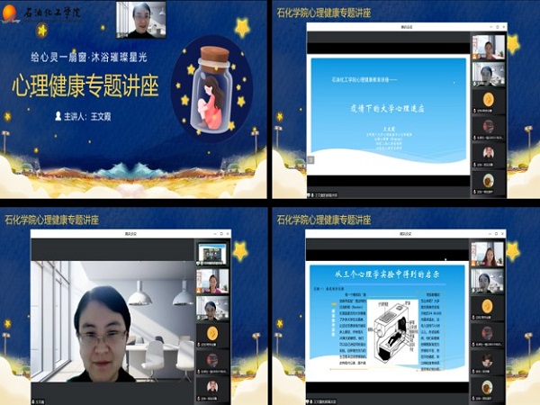 王文霞以疫情下的大学心理适应为题展开辅导,用两个互动游戏测试同学们目前的心理健康状态并进行解读:初入大学校园,由于生活、学习、人际环境、心理状态等因素的变化,导致同学们会面临很多心理适应问题,再加上疫情的影响,使得整体情绪低落、心理失控感明显成为普遍现象,从而引发较多的现实问题。通过马斯洛需求层次理论可知,静默的管理之所以让我们的生活有限制感是因为这样的状态使得我们的很多心理需求无法满足,导致一些微小的不适也会被放大,但这样的窘境并不是无法突破,通过阿登养老院实验我们可知,我们可以通过维持规律的生活、理性的思考这两种方式来克服确定感和控制感丧失所带来的不良情绪,同学们可以通过规律的作息、高效的学习或者更加创造性的方式达成自己生活或者学习方面的目标。同时同学们也要学会全面接纳自己的情绪,健康的心理状态并不代表着不产生负面情绪,而是要学会与负面情绪共存,带着问题去生活,在需要寻求帮助的时候勇敢进行自助或者寻求互助,在不断的解决问题过程中实现个人成长。随后王文霞与同学们进行了线上互动,解答了同学们提出的问题。(撰稿:常婕;终审:任鹏)