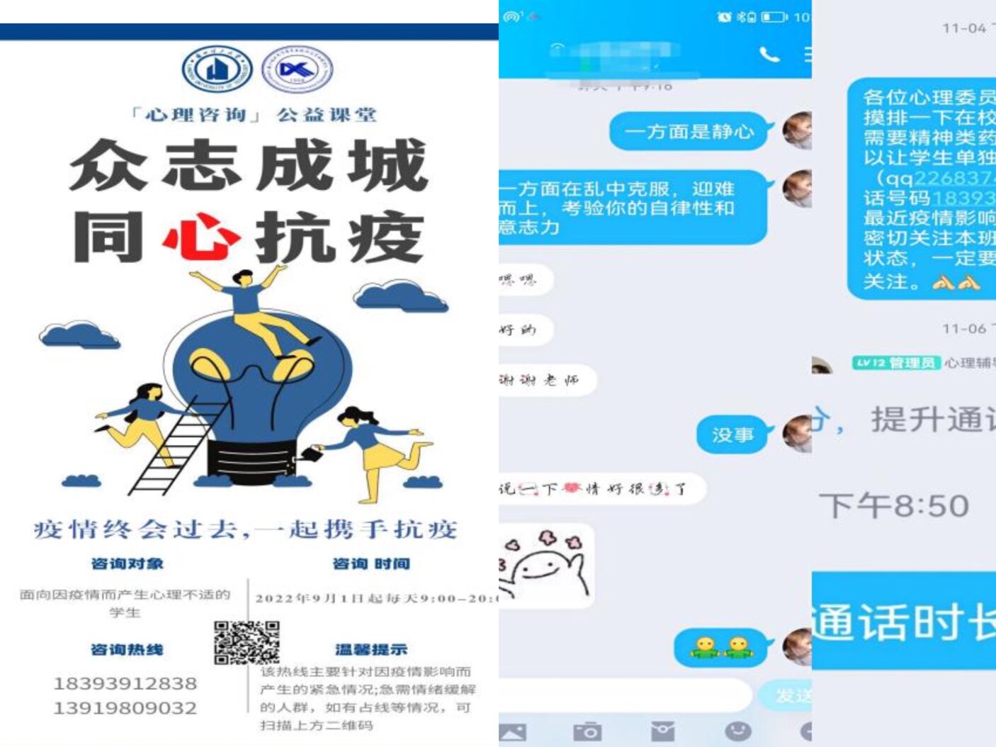 连日来,电信学院心理辅导站老师开通线上心理咨询热线服务,以电话、qq等形式为有需要的学生提供帮助。