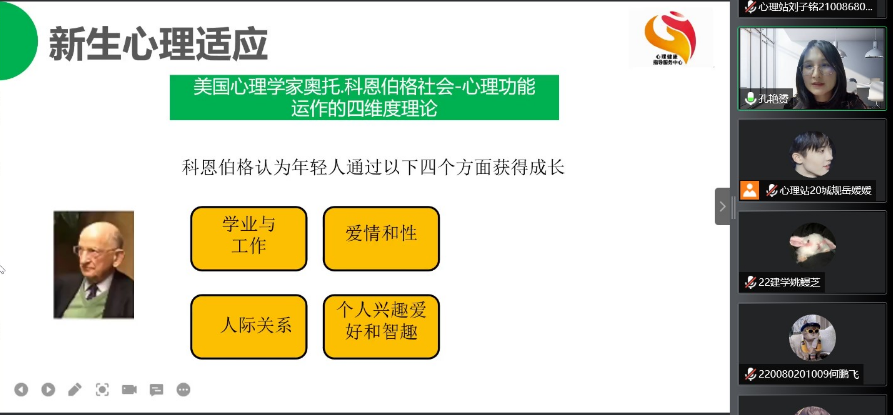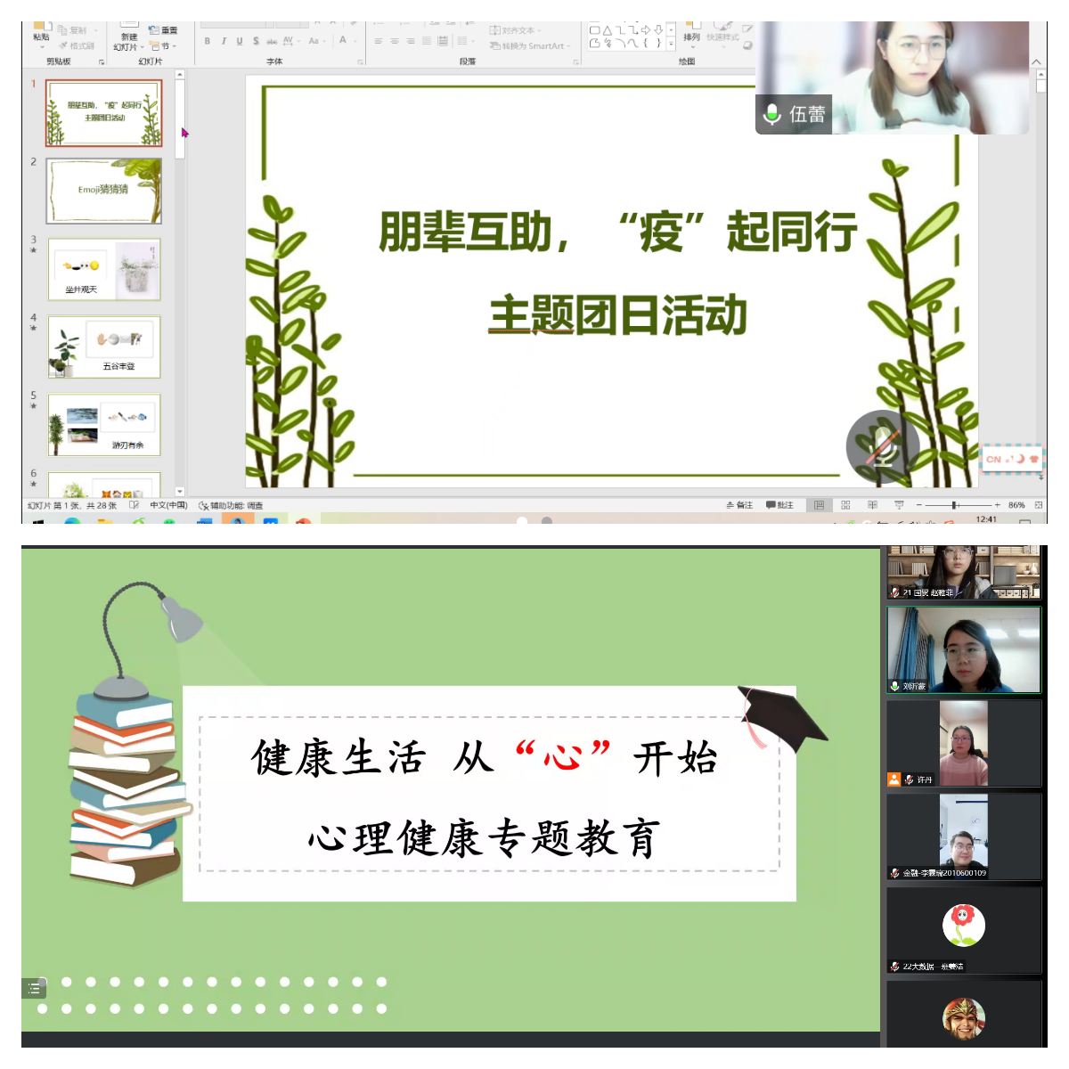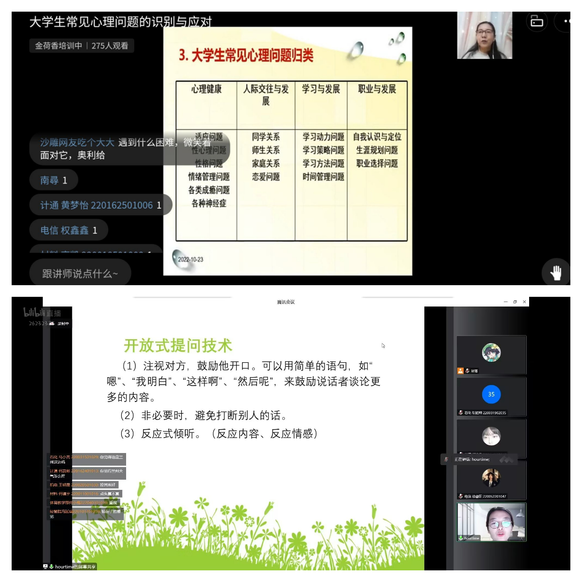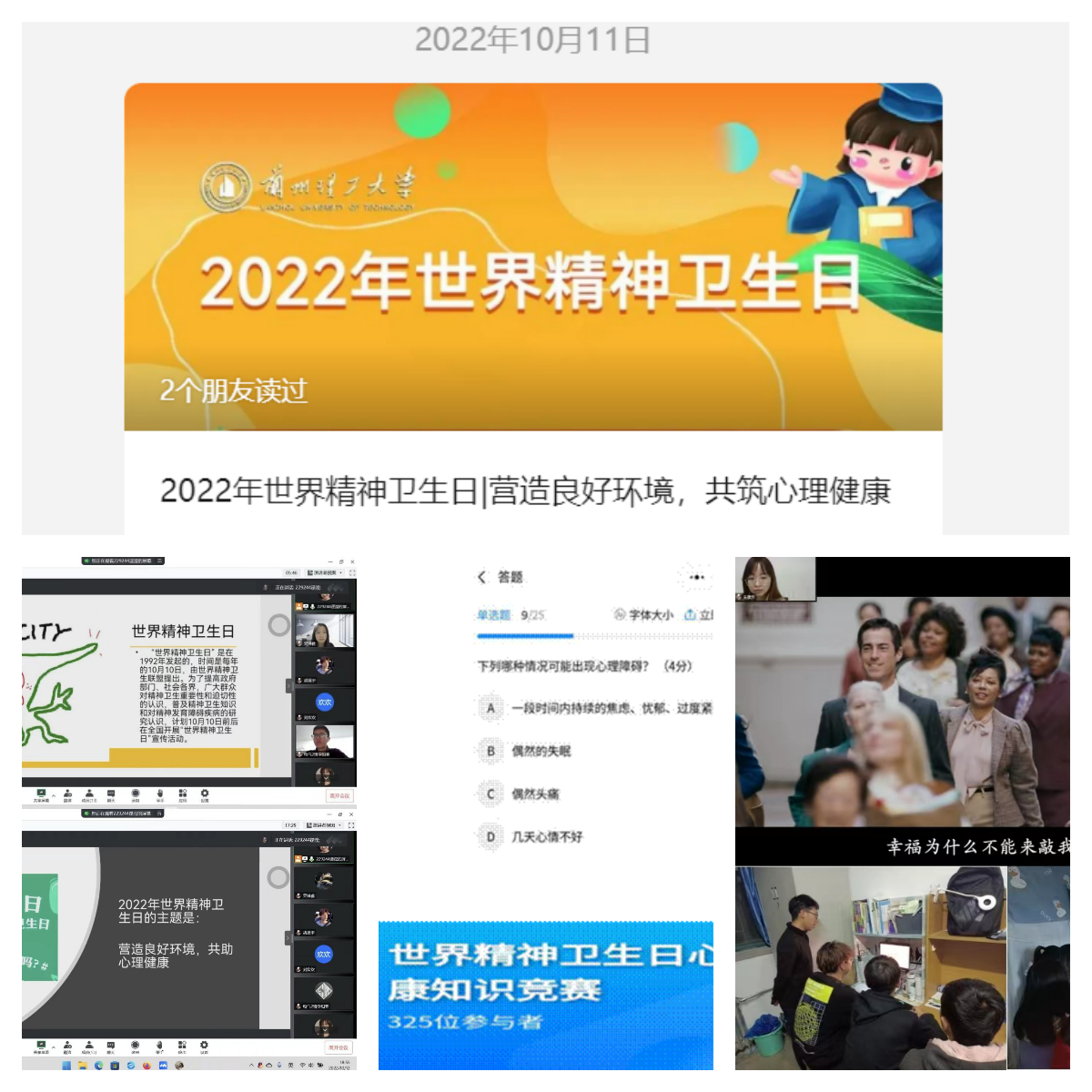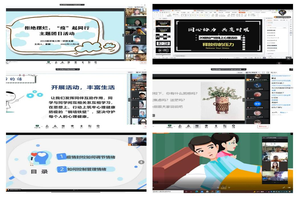 精心制作《新生心理适应手册》、《疫情全封闭期间的心理防护手册》,向同学们普及疫情新生适应常识、疫情下常见的心理应激知识,提供心理调适的方法,分享疫情下的心理资源。开设抗疫“心”讲堂、开展线上减压团体辅导、开通素质提升“云”端课堂,累计参与40000余人次。全校班级心理委员广泛开展“朋辈互助,‘疫’起同行”心理健康主题团日,覆盖90余个团支部。