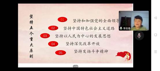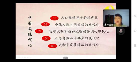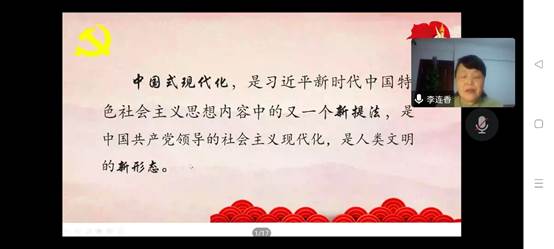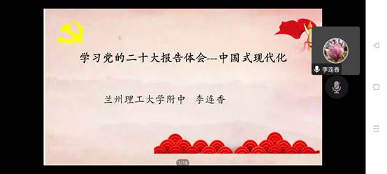“作为义务教育工作者,我们要把学习贯彻党的二十大精神作为当前和今后一个时期的首要政治任务抓紧抓实,切实把学习成果转化为更好的工作效果,以实际行动把党的二十大精神落到实处。”10月28日晚,xuexiao 附中邀请甘肃省初中、小学“道德与法治”分教学委员会委员李连香老师,做《学习党的二十大报告体会--中国式现代化》专题线上讲座。全体教职工线上参会。