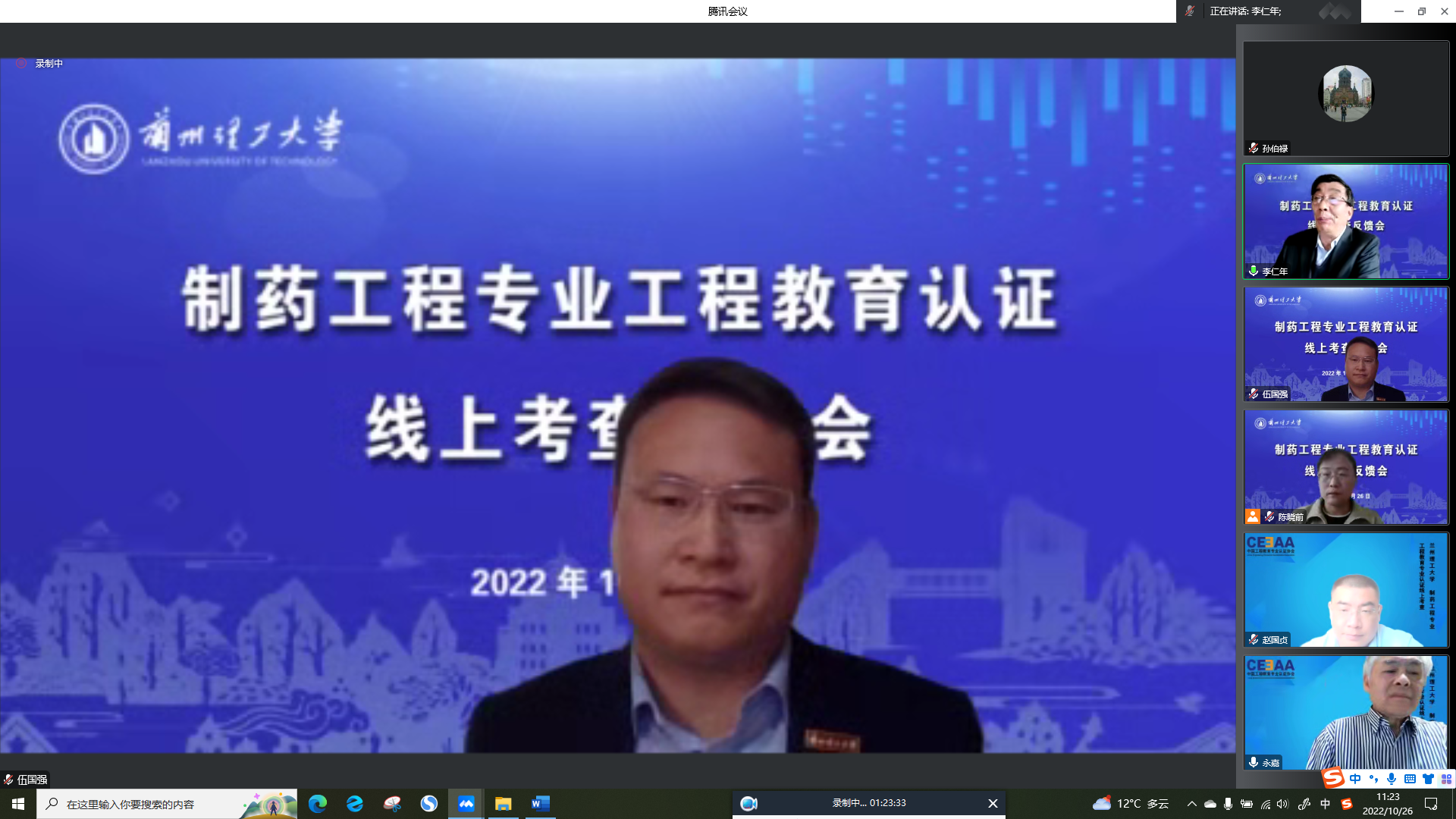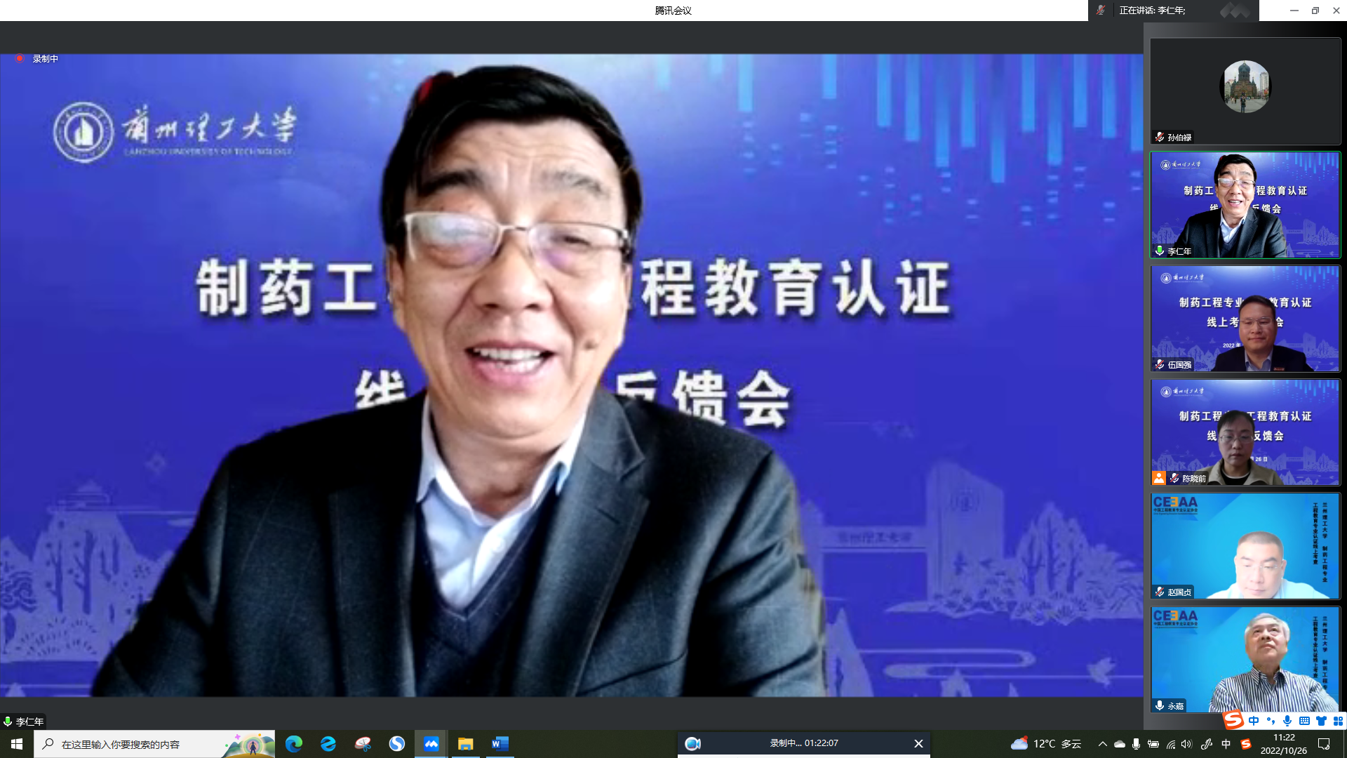 会上,生命科学与工程学院院长伍国强在听取专家组反馈后,代表全院师生向各位专家的辛勤工作和精心指导表示衷心感谢。他表示,从九月底开始,在将近一个月的时间里各位专家不辞辛劳,在云端通过查资料、看视频、听汇报、做访谈等多种方式,对制药工程专业在人才培养、师资队伍、课程建设、质量监控、持续改进等方面进行了一次全面高效的考察与评估,为专业的发展把脉问诊,出谋划策。此次认证考察,既是对制药工程专业建设和人才培养情况的一次全面会诊,也是对生命科学与工程学院近年来各项工作的一次大检阅。各位专家的意见全面、客观,既充分肯定了专业建设的成绩,体现了对学院的厚爱和帮助,也坦诚地指出了存在的问题和不足,指明了今后努力的方向,并有针对性地提出了改进意见,学院全部认领。今后在学校领导和各职能部门支持下,学院将抓紧制定整改工作方案,坚持问题导向,细化整改措施,补短板强弱项,集全院之力确保整改落实到位。学院也将以此次认证为契机,深入贯彻落实学生中心、产出导向、持续改进的理念,始终坚持教学质量生命线,进一步强化师资队伍和实践教学平台建设,完善人才培养方案,优化课程体系,深化教育教学改革,全面提升专业建设水平,促进学院各项事业高质量发展,为国家和社会培养更多的高素质医药类人才多的高素质人才。伍国强诚挚邀请各位专家在方便之时来兰州理工大学,对生命科学与工程学院进行指导,并考察如意甘肃,做客金城兰州。