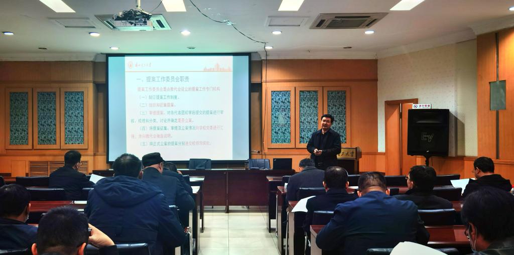 学校第八届教代会提案工作委员会主任张军成以进一步提高提案质量为目标,针对近年来学校提案征集工作存在的主要问题,结合实例,从提案征集的程序、提案撰写的规范和要求、二级党组织要加强对提案工作的领导和指导等方面进行了讲解,对做好今年的提案征集工作起到很好的指导作用。