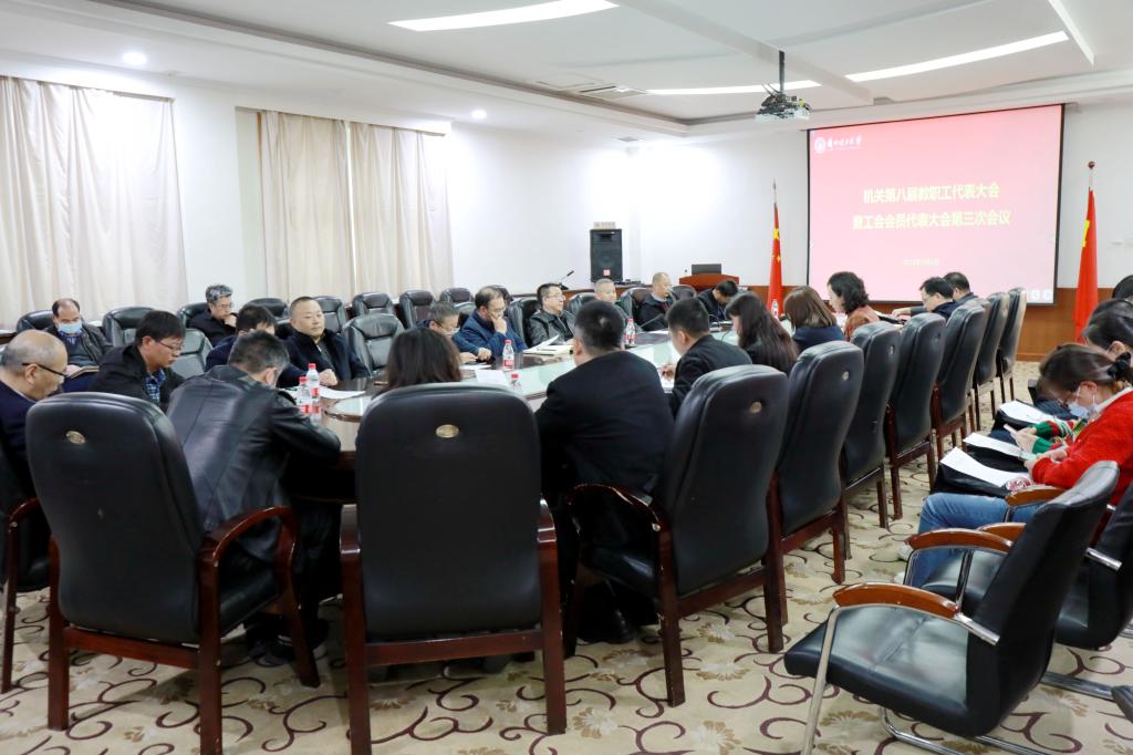 2023年3月6日下午,机关第八届教职工代表大会暨工会会员代表大会第三次会议在兰工坪校区逸夫科技馆3号会议室召开。