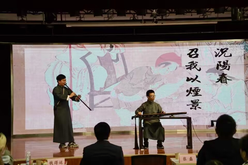 活动开始前,文学院副院长钱得运致开幕词,他希望同学们认真参与活动,在活动中感受传统文化的魅力。此次活动分为古琴雅集和传统文化体验两部分。在琴箫合奏《桃李园序》中,活动正式拉来了序幕,雅集中不仅有《庄周梦蝶》《阳关三叠》《平沙落雁》《文王操》等中国传统琴曲演奏,还有洞箫独奏《妆台秋思》以及古典舞《入画江南》的表演,让同学们现场感受到了中华优秀传统文化的无限魅力。传统文化体验环节中设置了古琴体验、书法体验、围棋对弈、投壶活动等传统文化体验区,活动不仅丰富了同学们的课余文化活动,同时在活动中大家也更直观地了解和领略到中华优秀传统文化的博大精深。