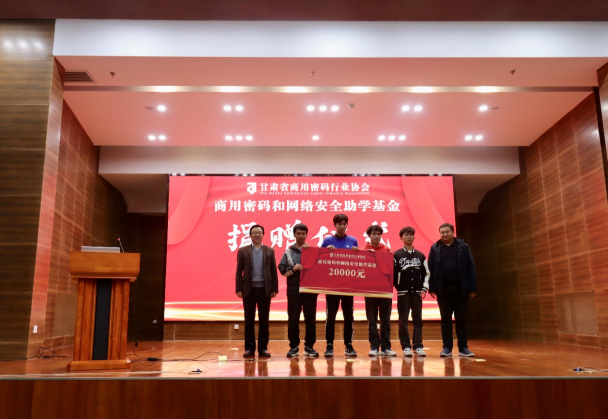 卢建宙代表协会会员单位和高国礼共同进行了甘肃省商用密码行业协会、商用密码和网络安全助学基金捐赠仪式。
