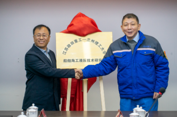 12月16日,江苏政田重工—兰州理工大学船舶海工液压技术研究院在江苏政田重工股份有限公司揭牌成立。兰州理工大学能源与动力工程学院院长魏列江教授、流体传动与控制系主任闵为教授,江苏政田重工董事长单幼华女士、总经理黄志峰先生及公司主要管理与技术人员参加了揭牌仪式,会议由南通市船舶工业行业协会顾问张跃华先生主持。