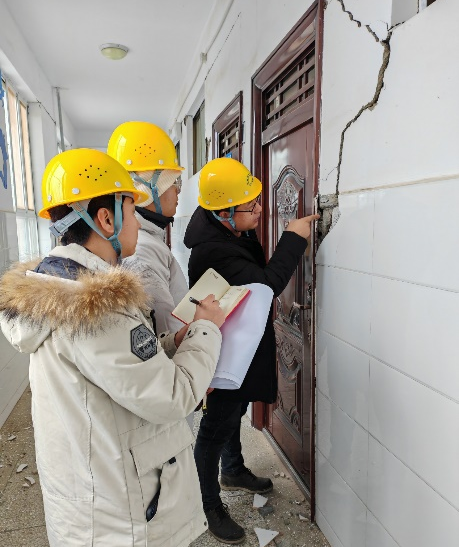 抵达后,在当地政府部门及带队校领导的具体指导下,支部党员充分发挥专业优势,重点对积石山县柳沟乡、石塬乡、刘集乡等核心地震灾区中小学和幼儿园的校舍建筑损坏和财产损失进行评估,主要对教室、宿舍、食堂、厕所等是否存在安全隐患及受损情况一一排查,统计正常开学所需救援物资情况,为后续灾后重建提供专业数据支撑。