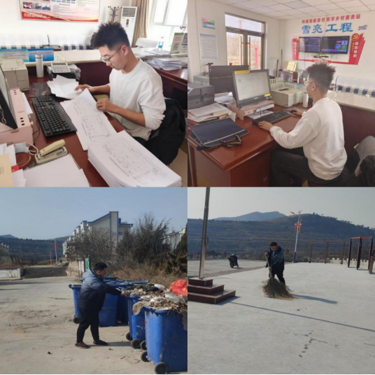为顺应时代号召,推动乡村振兴,将青年学子的知识、创意、技术和项目资源辐射到更广大的地区,王志、赵俊恒等优秀学子积极投身家乡事业,切身体会相关部门工作内容,尽心尽责工作,为推进乡村振兴、人文振兴贡献青春力量,展现青春风采。赵俊恒同学在村委会的安排下,跟随工作人员对村里垃圾堆放点进行整理,宣传、引导村民将垃圾投放至规定的地点,改善村容村貌;检查居民活动区域存在的安全隐患问题,及时反馈并处理。实践结束后,赵俊恒也有了深刻的感悟:“跟随着社区工作人员的脚步,看着周围老人孩子们满意的笑容,我深刻感受到了奉献美和服务美。劳动培养了我们的责任心,也使村容、村貌变得更好,今后我要更加努力学习,用扎实的学识回报社会,回报家乡。”