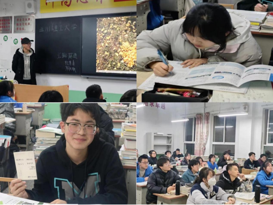 为宣传兰理工风采,展现红柳精神,普及填报志愿知识,薛通、杜箐箐、薄敏敏等多支实践队伍以“带着我的大学走近你”为主题深入高中校园,为高三学子宣传兰理工风采,讲述精彩的大学生活,讲解高考复习经验及做题技巧等。通过ppt演绎、宣传片展示、互动提问、高考技巧分享等环节激发高考学习兴趣,鼓励学子报考兰州理工大学,奋进求是,以青春之花,结奋斗之果。