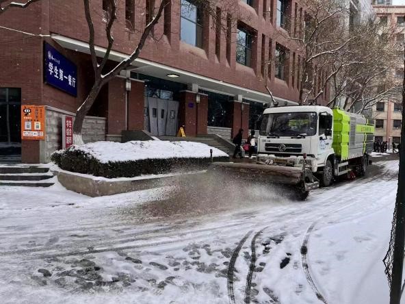 新学期伊始,气温骤降、阵雪突袭,导致校园出现路面积雪、结冰现象,给师生出行造成不便。后勤管理处联合兰石雅生活物业和东吴物业以“雪”为令、闻雪而动,第一时间启动道路除雪防冻应急预案,迅速出动、全员上路,开展大规模扫雪除冰工作,切实保障广大师生出行安全。