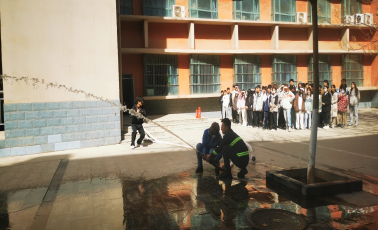 本次演练分为四个阶段。第一阶段,由专业消防工作人员对学生进行消防安全培训,重点介绍了各类灭火器材的名称、用法,强调了有关火灾现场的应急处置方法及使用灭火器的注意事项。第二阶段,在消防工作人员的指导下,按照消火栓的使用步骤指导学生进行消火栓出水实操演练。