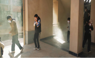 第三阶段,模拟火灾现场组织疏散逃生演练,学生低头弯腰,用湿巾捂着口鼻迅速有序地按照指定路线应急疏散。第四阶段,组织灭火实战演练,消防工作人员现场示范灭火器的使用方法,并指导学生进行灭火实战演练。