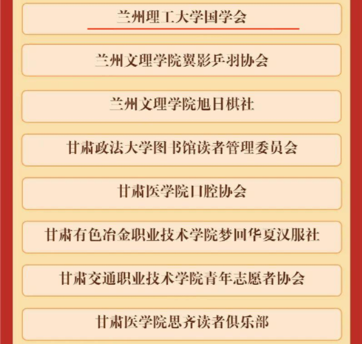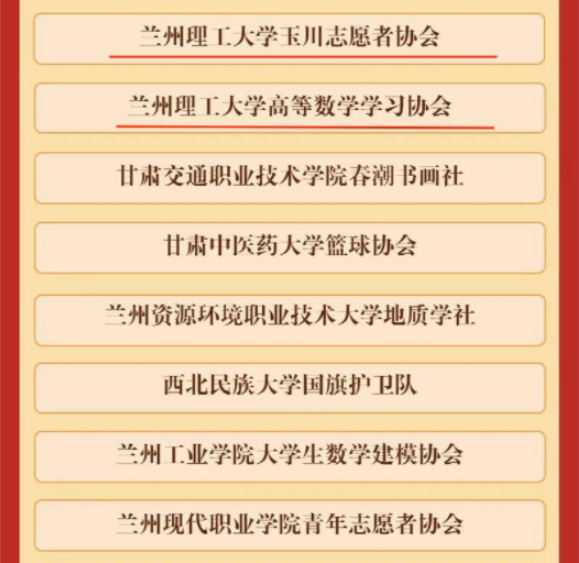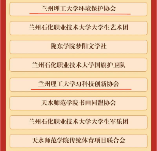 为进一步激发高校学生社团活力,充分发挥学生社团育人功能,在团中央相关部门指导下,团省委学校部开展了2023—2024学年高校“活力社团”风采展示活动,全省近200个“活力社团”参与风采展示,集中展示各高校学生社团创新经验做法。经过各学校集中展示、审核推报、转发点赞等环节,结合日常工作实际和建设成果,我校玉川志愿者协会、高等数学学习协会、国学会、环境保护协会、3J科技创新协会共五个社团成功入选2023-2024学年甘肃省高校“活力社团”TOP100榜单。