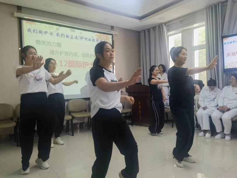 活动中,全体护士进行了更换工作服仪式,对2023-2024年度3名优秀护士、护理及急救技能竞赛6名获奖护士进行了表彰,并给护士代表献花。护士姐妹进行了“青春舞曲”舞蹈表演,她们的动作流畅、节奏感强、舞姿优雅,充分展示了医院护士青春靓丽的精神风貌和奋发有为的团结精神。