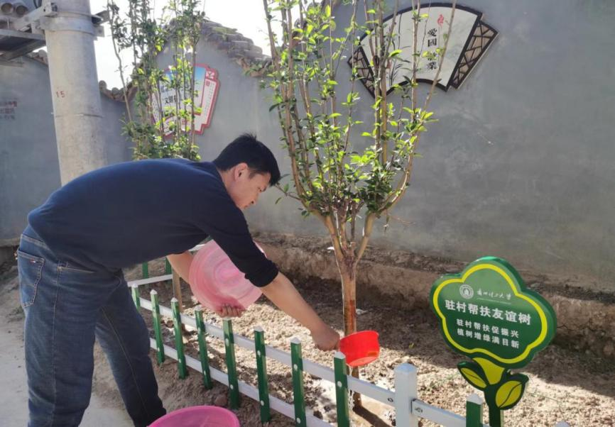 而今,两年驻村时光匆匆而过,在这片土地上留下了他们深深的足迹。他们挖坑填苗、挥锹培土、扶苗浇水,村里的干部群众也纷纷加入,与驻村工作队一起劳作,共同回忆一起经历的美好时光,一同感受乡村振兴伟大战略实施以来农村翻天覆地的变化。这些树苗不仅象征着驻村工作队对这片土地的深厚情谊,也成为连接驻村工作队与乡村干部、帮扶村老百姓的友谊之树。