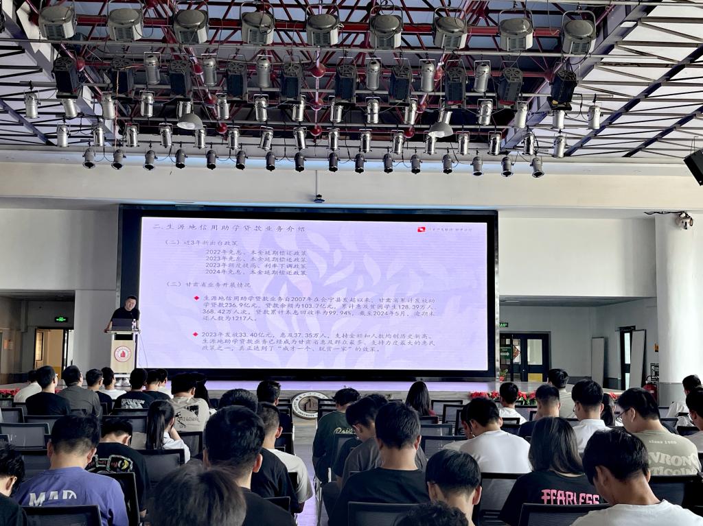 为切实增强学生的诚信意识和责任意识,营造诚实守信的校园氛围,6月12日上午,学生处分别在兰工坪校区、彭家坪校区大学生活动中心召开生源地信用助学贷款毕业生诚信教育大会。学生处资助中心老师、国家开发银行甘肃省分行客户经理安刚刚、各学院辅导员和生源地助学贷款毕业生代表共计600余人参加。