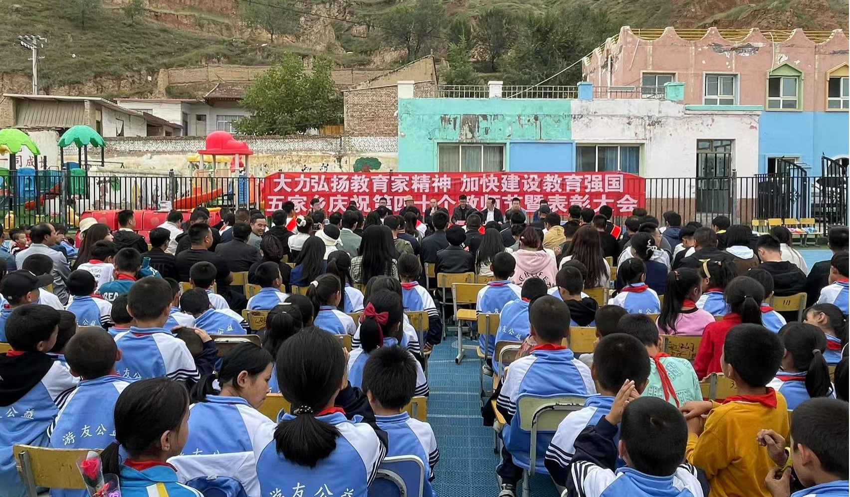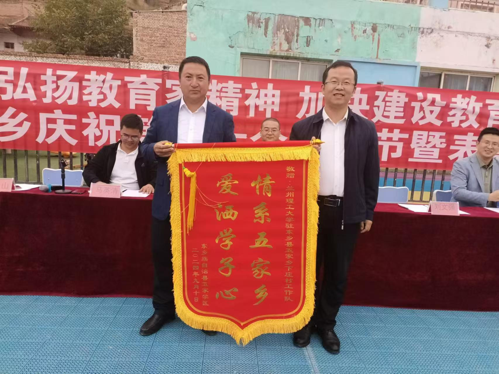 9月10日,东乡县五家乡“庆祝第40 个教师节暨表彰大会”在五家学校举行,东乡县领导,五家乡党委政府负责人,五家学区全体师生参加会议,兰州理工大学五家乡驻村工作队全体成员受邀参加大会。