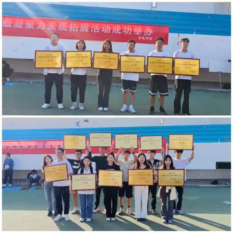 研究生新生班级凝聚力素质拓展活动包含同心合力、勇往直前、风雨同舟、一鼓作气、青春飞扬五个项目。活动过程中,各班级研究生齐心协力,团结合作,相互鼓励,展现出研究生新生竞技场上的卓越表现和精神风貌。紧张热烈的比赛后,最终根据各环节的比赛得分,最终评选出班级一等奖6个,二等奖10个,三等奖16个,精神文明奖8个,优秀奖7个。