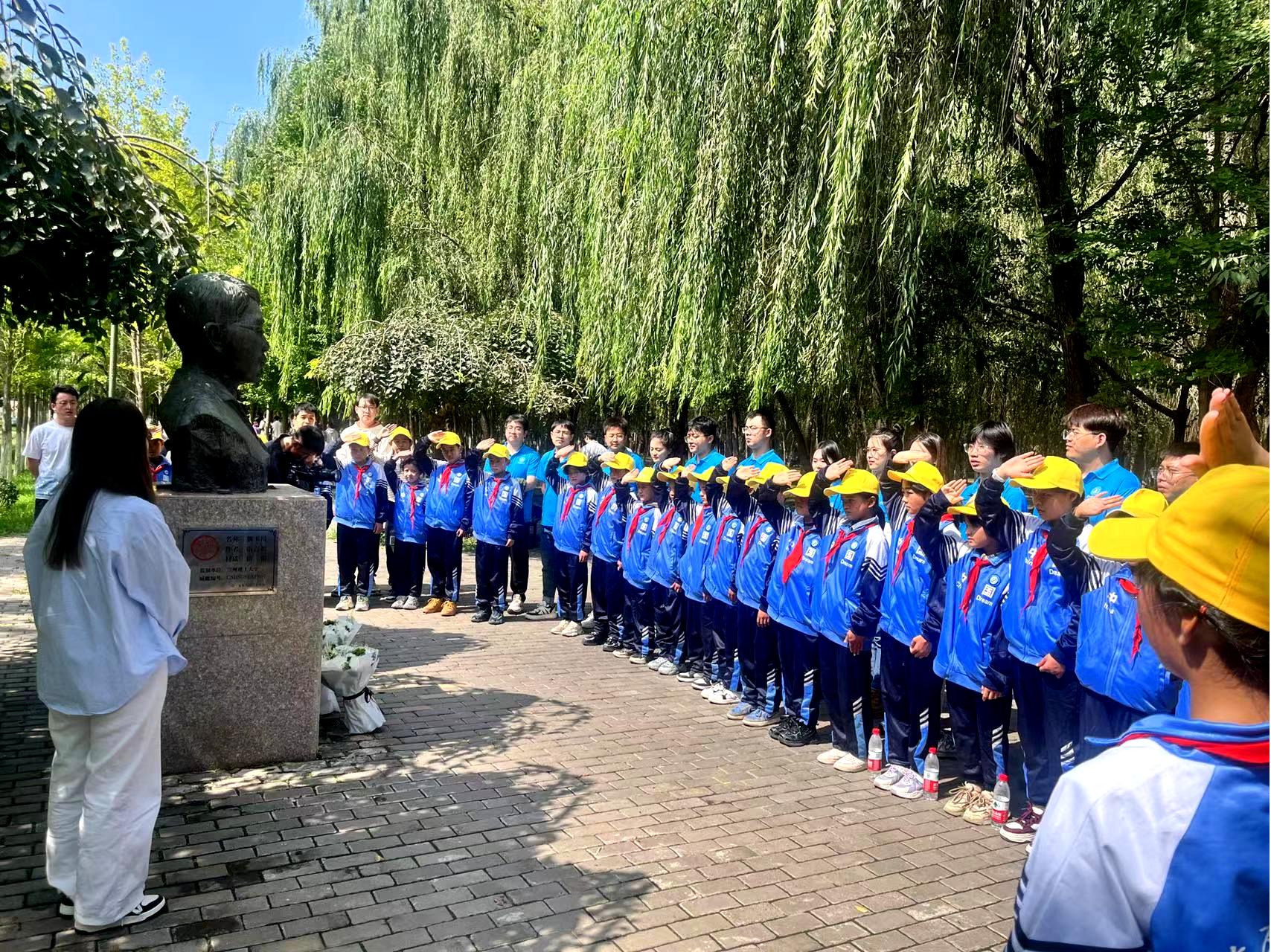 中午时分,小学生来到兰州理工大学彭家坪校区,7月与他们在下庄村刚见面的30名研究生党员已等候多时,在大哥哥、大姐姐们的陪伴下,小学生们带着好奇与憧憬,漫步美丽校园,感受大学氛围,先后参观了大学生活动中心、图书馆与红柳创客梦工厂,恢弘的建筑、丰富的藏书、独特的科技作品令小学生们目不暇接。在玉川广场上,大学生志愿者为小学生们讲述了魏玉川同学舍己救人的英勇事迹,孩子们深受感染,小学生行少先队队礼并向魏玉川雕像献上鲜花。
