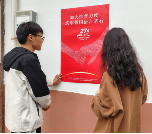 同学们通过海报等横幅的张贴,在校园内进行更深层次的宣传,保证师生能时时看到普通话工作的重要性,从而潜移默化自觉讲普通话、写规范字。