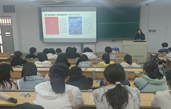 2024年9月20日下午,文学院举办以“推广普通话,强化民族凝聚力”为主题的推广普通话活动周专题讲座,邀请兰州城市学院副教授,国家级普通话水平测试员,甘肃省语言文字工作专家咨询委员会委员任丽花老师主讲,文学院副院长钱得运主持,2024级汉语言文学专业全体本科生和2023级汉语国际教育专业硕士生参加。