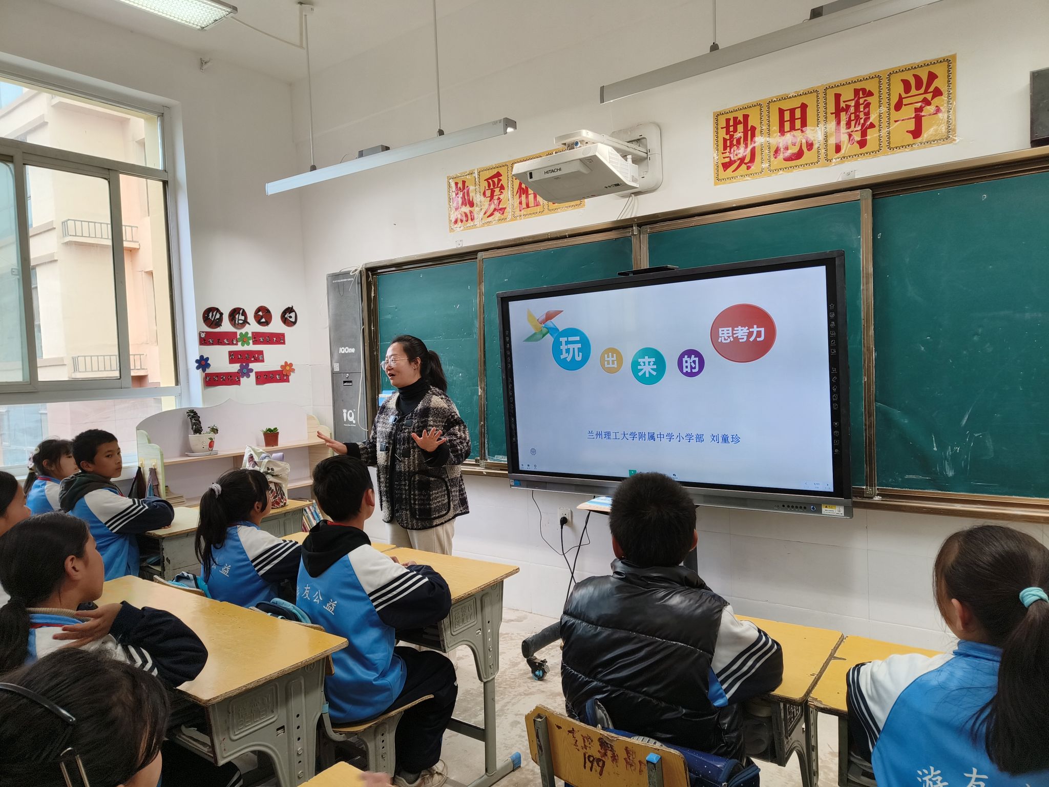 附中教研室主任张艳丽围绕教科研工作开展与五家学校的老师们进行了交流分享。她梳理总结了兰理工附中近年来教科研方面的经验和成果,为五家学校教研工作提供了可借鉴的范本。附中刘童珍老师执教了一节“双马双骑士”益智器具展示课。本课程是一款巧拼顿悟类器具,由三块绘图拼板组成,板上分别绘有两匹无鞍之马和两位端坐马鞍上的骑士,要求学生们将其拼摆成两名骑士同时骑在马背上。课堂上,刘老师通过问题引导,让学生打破思维定式,从新的角度思考、创造,成功解决了这一问题。整节课以学生思维培养为落脚点,在实践动手中发展学生思维,启迪学生智慧。
