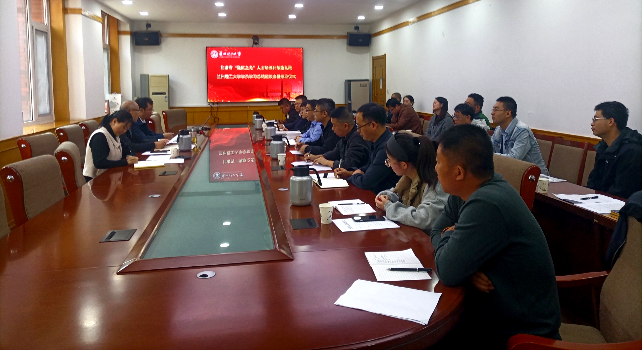11月1日上午,学校在行政楼二楼举办甘肃省“陇原之光”人才培养计划第九批学员学习总结座谈会暨结业仪式,听取学员学习成果汇报,总结人才培养成效。党委教师工作部、人事处有关负责同志和我校接收培养的第九批13名学员、第十批10名学员参加了结业仪式。