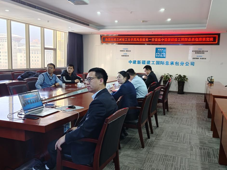座谈会上,中建新疆建工 (集团) 有限公司相关领导对学院来访人员表示欢迎,并介绍了公司的发展历程、业务范围、企业文化以及招聘要求、福利待遇、晋升路径等。周凤玺对公司的热情接待表示感谢,详细介绍了学院的专业设置、人才培养模式、科研成果以及毕业生就业情况。双方共同希望在人才培养、毕业生实习就业和产学研合作等方面进一步加强合作。