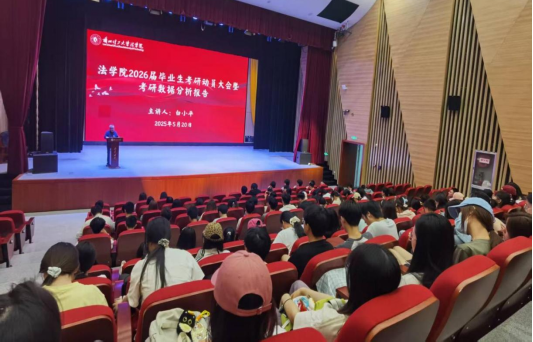 动员会上,法学院白小平教授紧密围绕当前就业、考研形势和学院近八年毕业生考研数据,从报考趋势、上线率、录取院校层次、本校研究生录取情况等多维度展开深入细致的分析。并建议2026届本科生结合自身实力,理性选择考研目标院校和专业,扎实系统学习专业科目,加强考研真题练习,注重心态调整,实现劳逸结合。为学生提供了清晰的备考目标与策略建议。